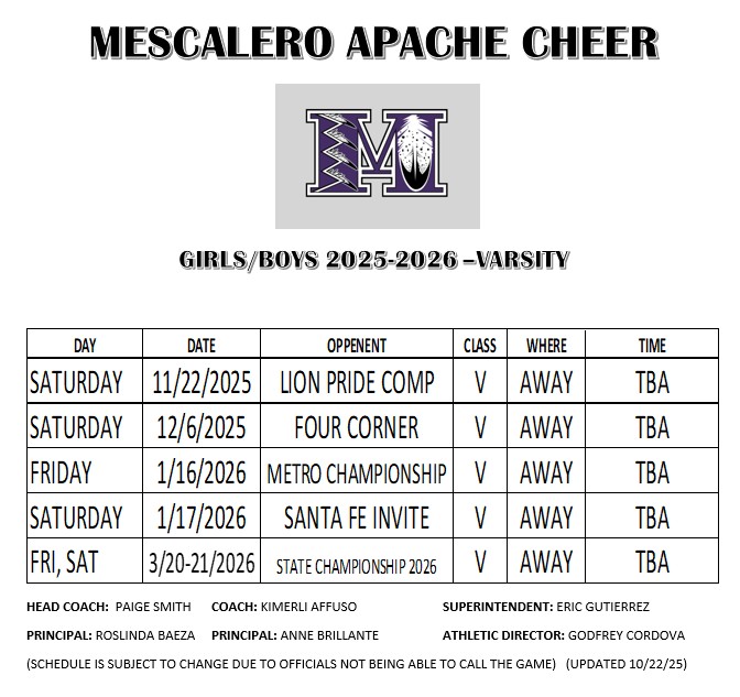 Mini cheerleaders will perform during the Homecoming football game! Open to the public! Age group- 5years old- 6th grade. Please fill out forms. The last date to sign up is 9/12/25!